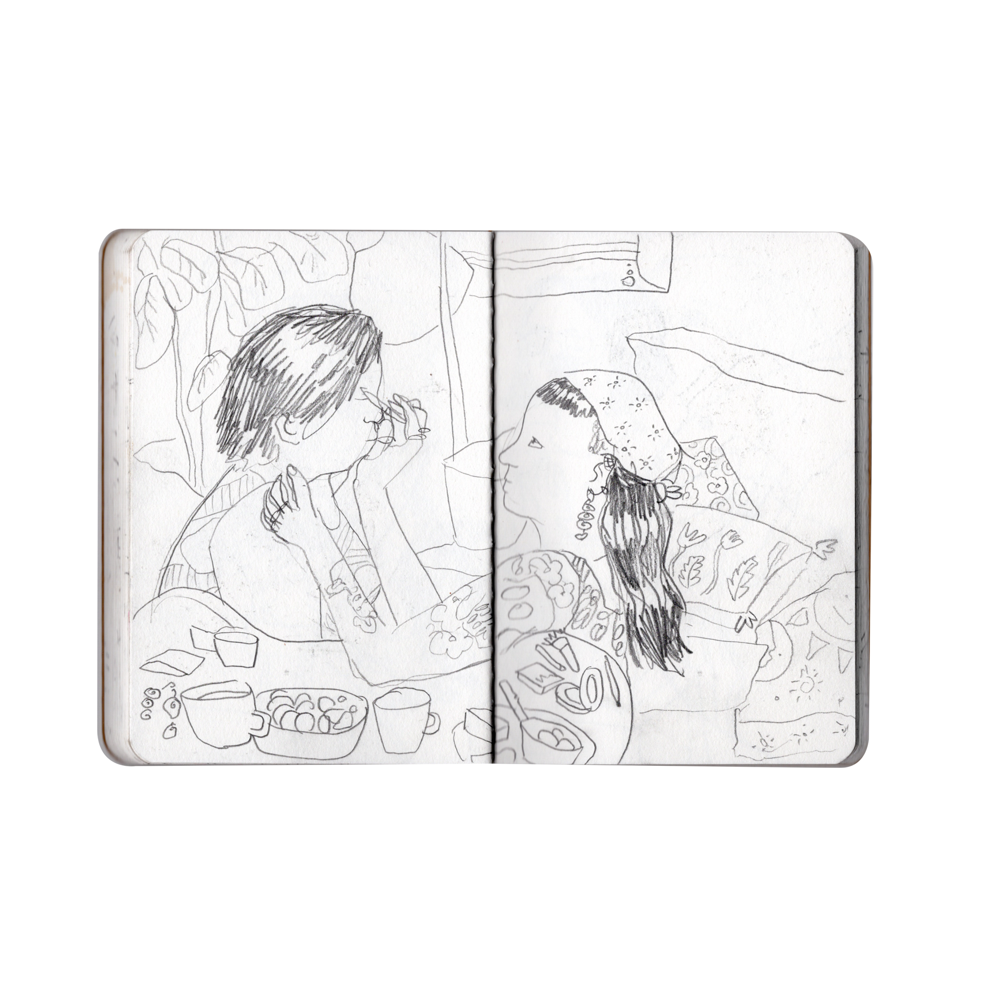 On that seven-day trip, I drew everything. Three spreads a day. Basic, messy, weird. But honest. When I got home, I kept going.