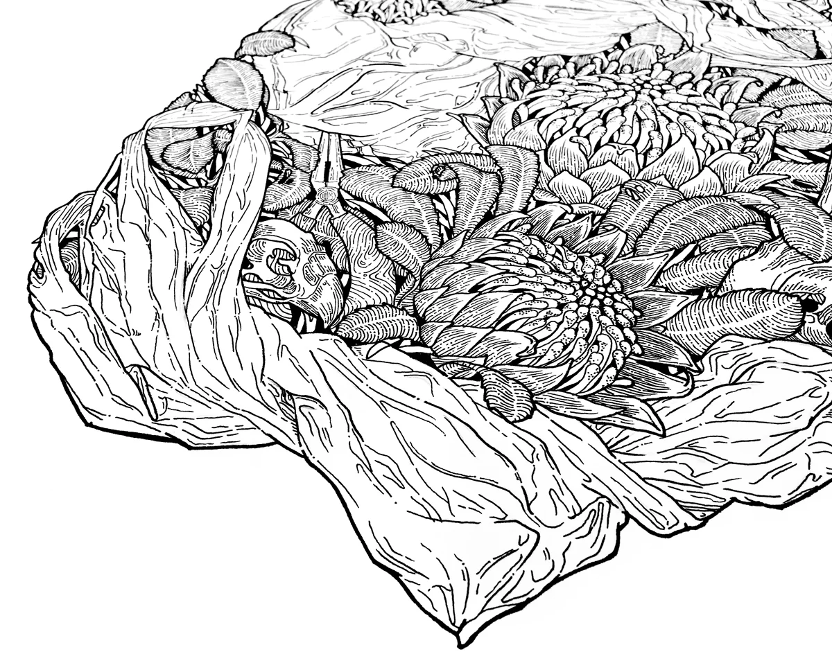 This series explores the relationship between the alien form of native Australian flora and the man-made, destructive forces that thrive in their area. The obscure shapes that make up the overall composition of the pieces are a further reflection of the hostile and alien environments that Australian culture thrives in.